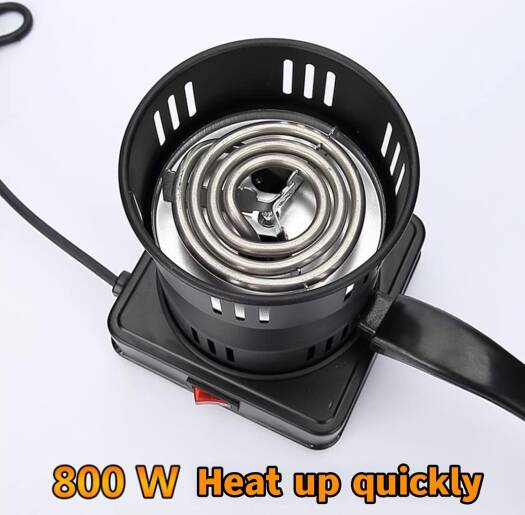 - 800W STOVE SAVE YOUR WAITING The electric single burner is equipped with a powerful heating plate, it only need 5-8 minutes to make the coals, coconut charcoal, bamboo, wood, to burn red. There is no annoying long wait.